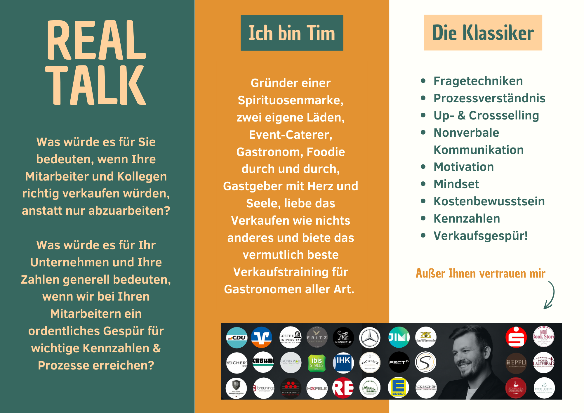 In all den Jahren des Verkaufs und der Gastronomie habe ich leider viel zu oft miterlebt wie unfassbar viel Potential oft auf der Strecke bleibt, da die meisten Servicekräfte nicht ausreichend im aktiven und erfolgreichen Verkauf am Gast geschult sind! Dabei geht neben einer beträchtlichen Summe Trinkgeld auch unglaublich viel Umsatz verloren.